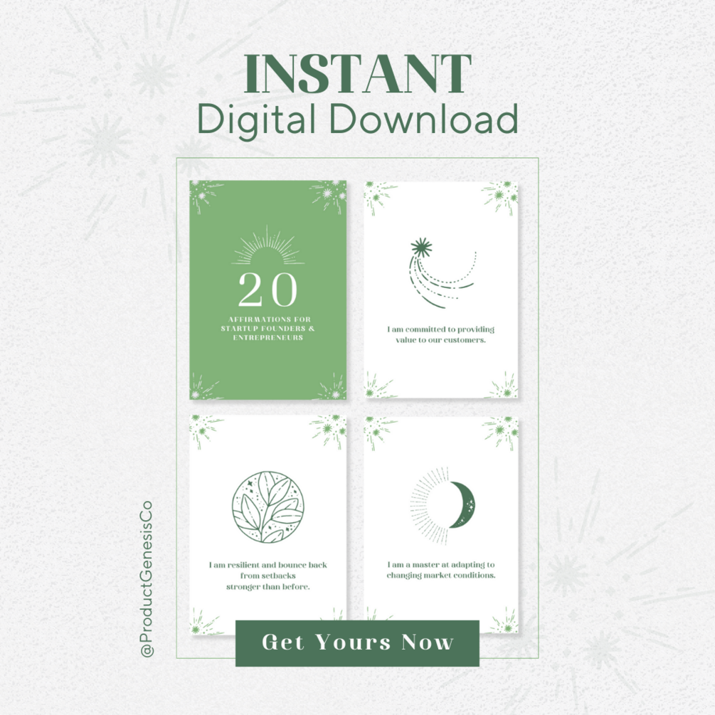 20 Digital Affirmation Cards for Startup Founders - Positive Mantras for Entrepreneurial Success [Printable]